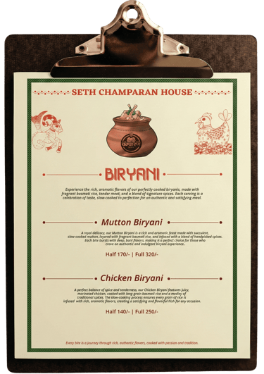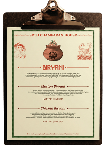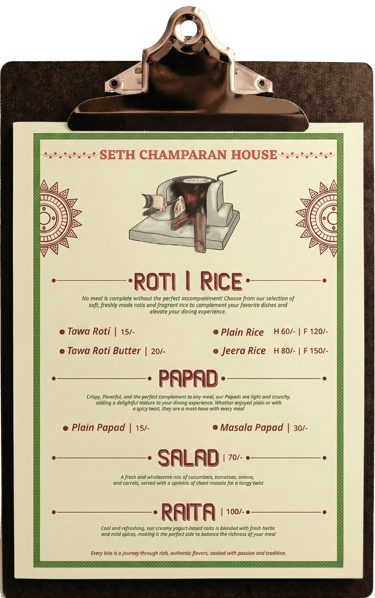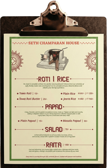 Seth Champaran House Menu
