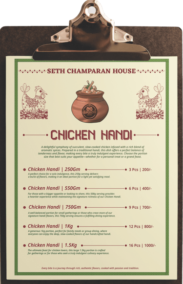 At Seth Champaran House, we believe in more than just serving food—we bring traditions to life, one handi at a time. Your interest in joining our growing family means the world to us. Together, let’s take the rich flavors of Champaran to new heights!